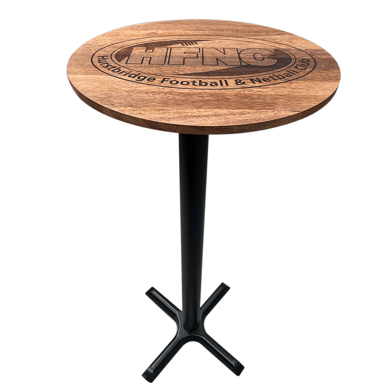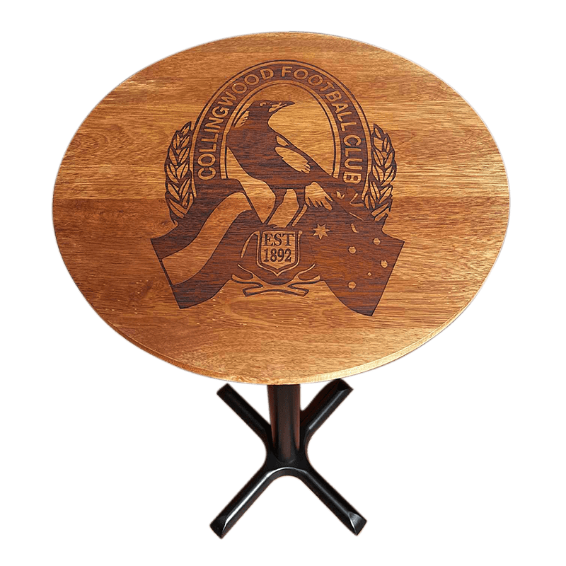 Our custom engraved hardwood bar tables and wall hangings are built to impress.